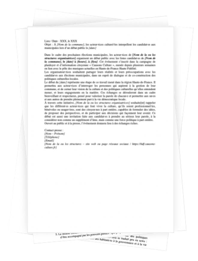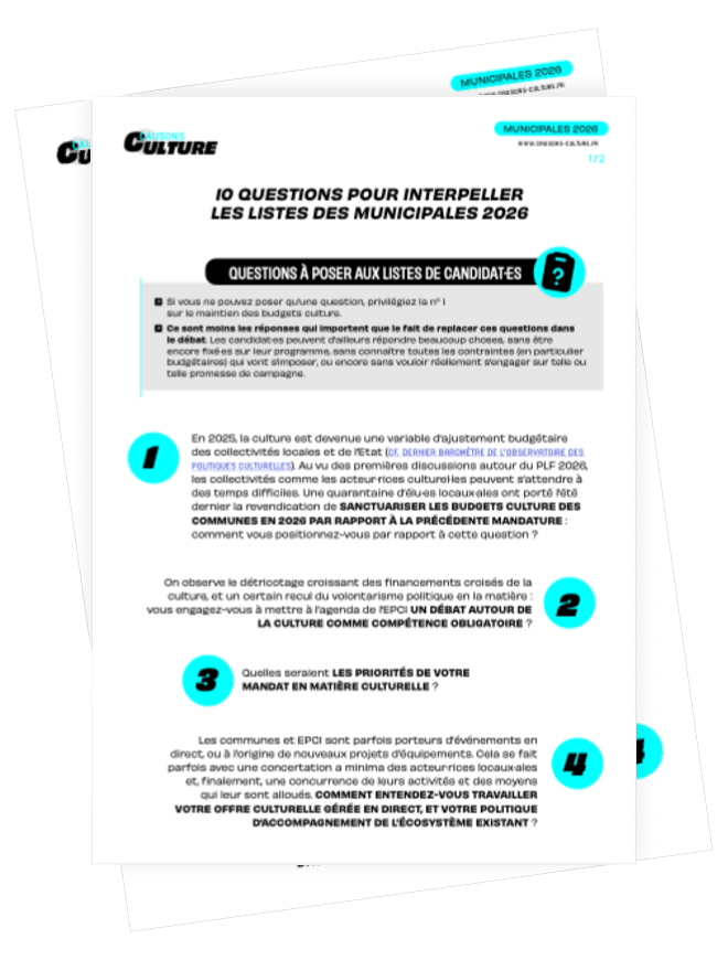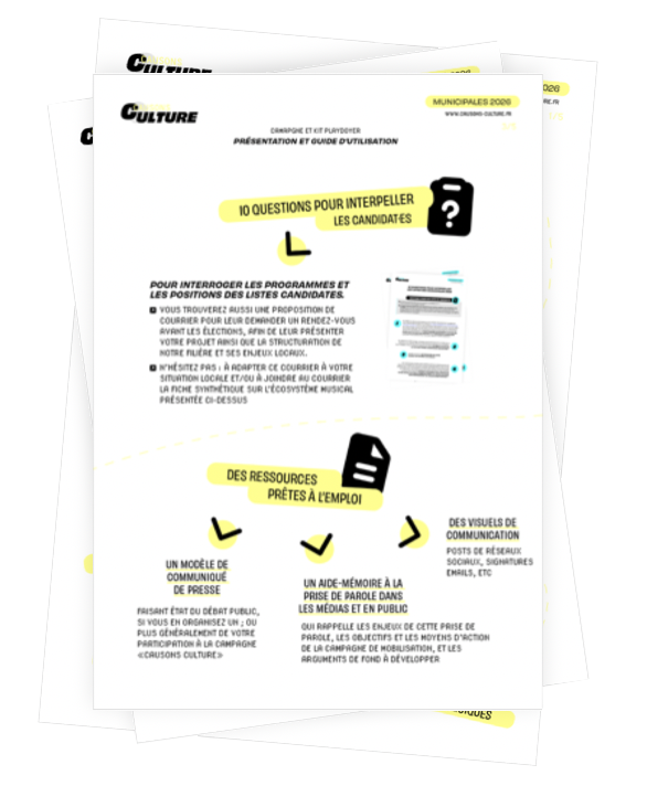 Un kit de documents et de conseils pour convaincre les futur·es élus·es municipaux et communautaires qu’ensemble, nous pouvons faire de la culture un enjeu essentiel de politique publique.